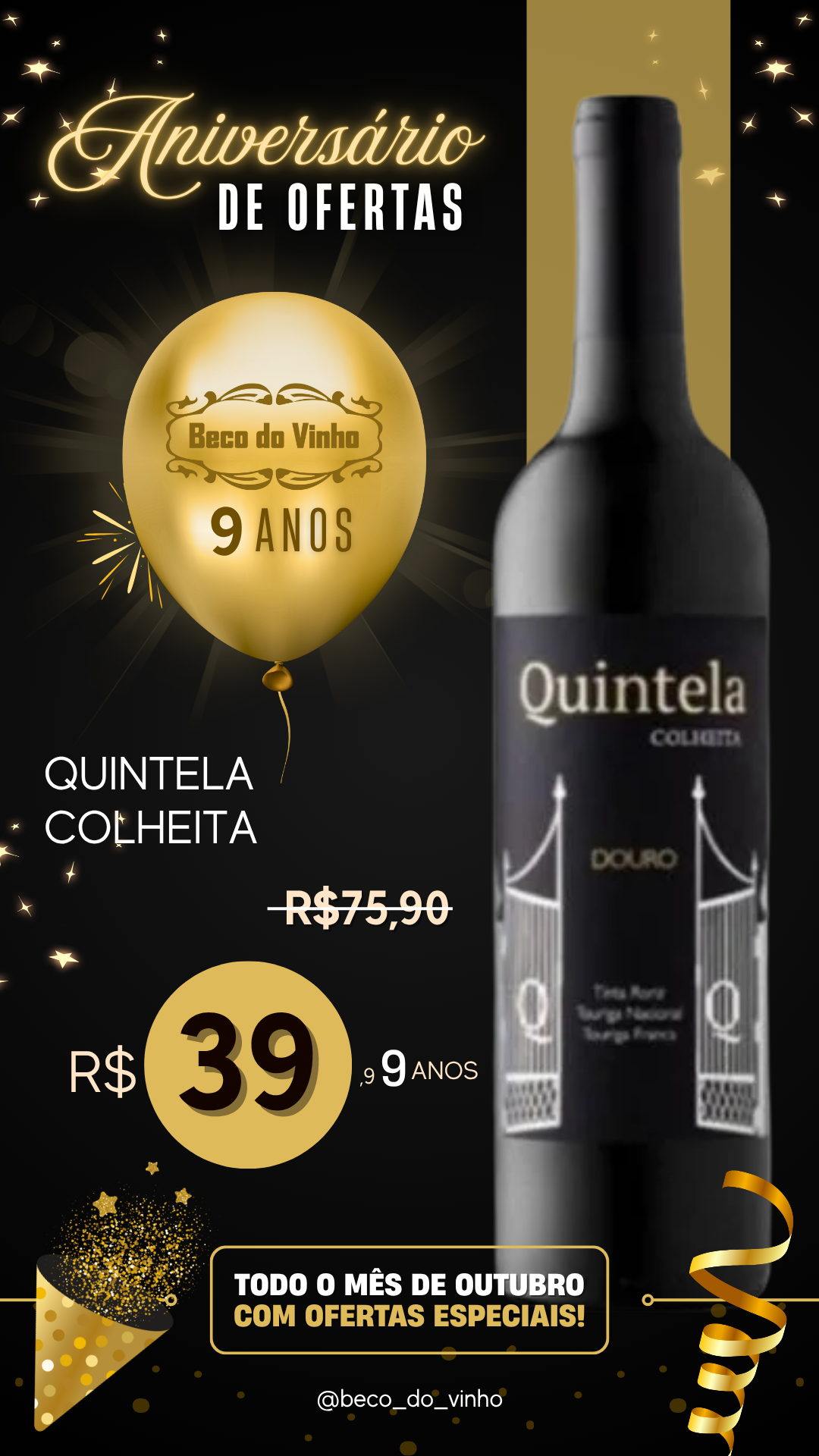 Um tinto elegante e encorpado da célebre região do Douro, produzido pelas vinhas da margem direita do rio Douro (município de Alijó). Elaborado com uvas das castas Tinta Roriz, Touriga Nacional e Touriga Franca, com teor alcoólico em torno de 13%.